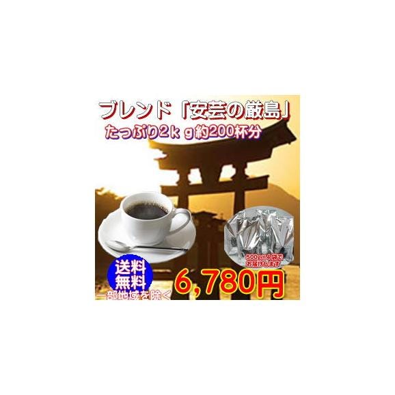 まろやかな苦味とフルーティな甘みを備えたコーヒーです。中深煎りのすっきりとした味わいの中に、薫り高いブレンドが出来上がりました。もみじ饅頭はもちろん和菓子との相性も良く、読書やDVD鑑賞のお供にぴったりのブレンドです。 ■安芸の厳島×2kg(500g×4)約200杯分 合計たっぷり2,000g! |