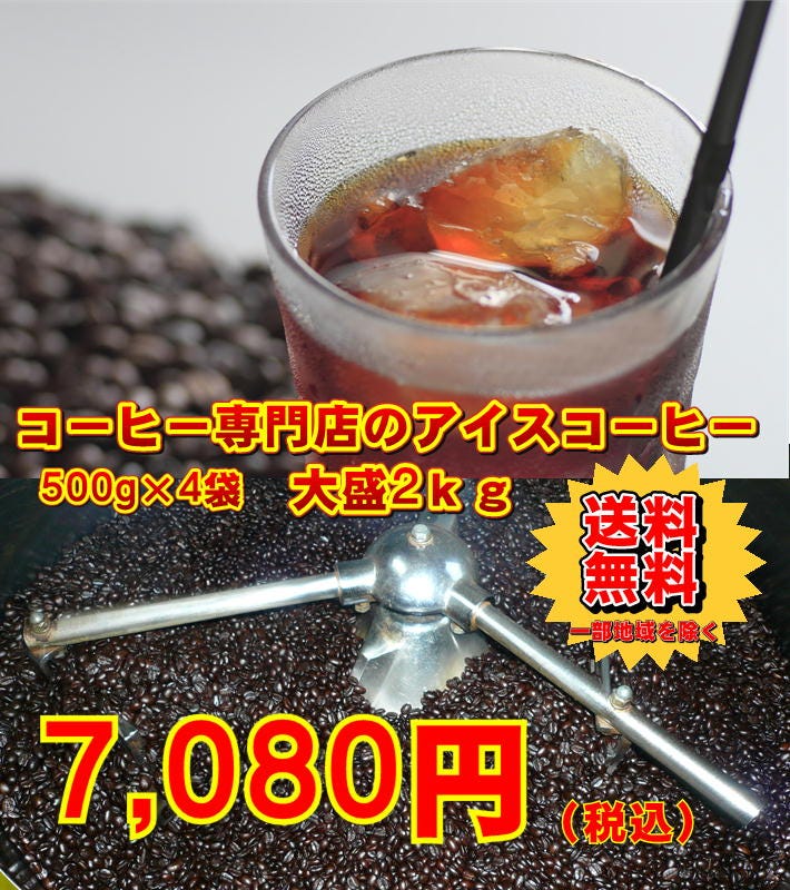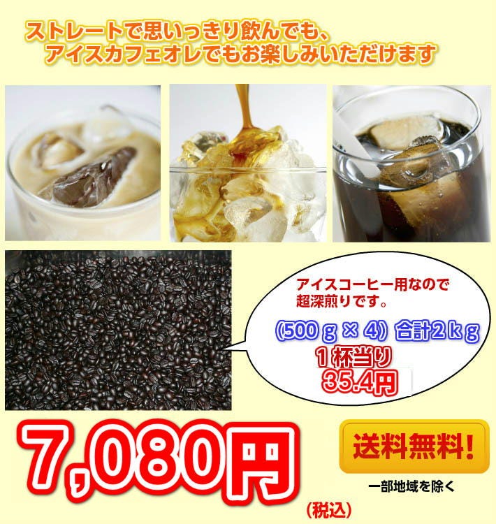 ■アイスコーヒーブレンド500g×4(合計2kg)約200杯 合計たっぷり2,000g(約200杯分)! ◆アイスコーヒーブレンド通常商品(200g/1,100円(税別・送料別)はこちら→ |