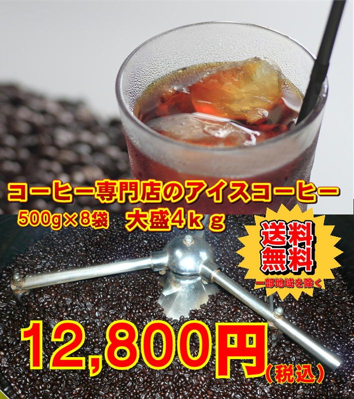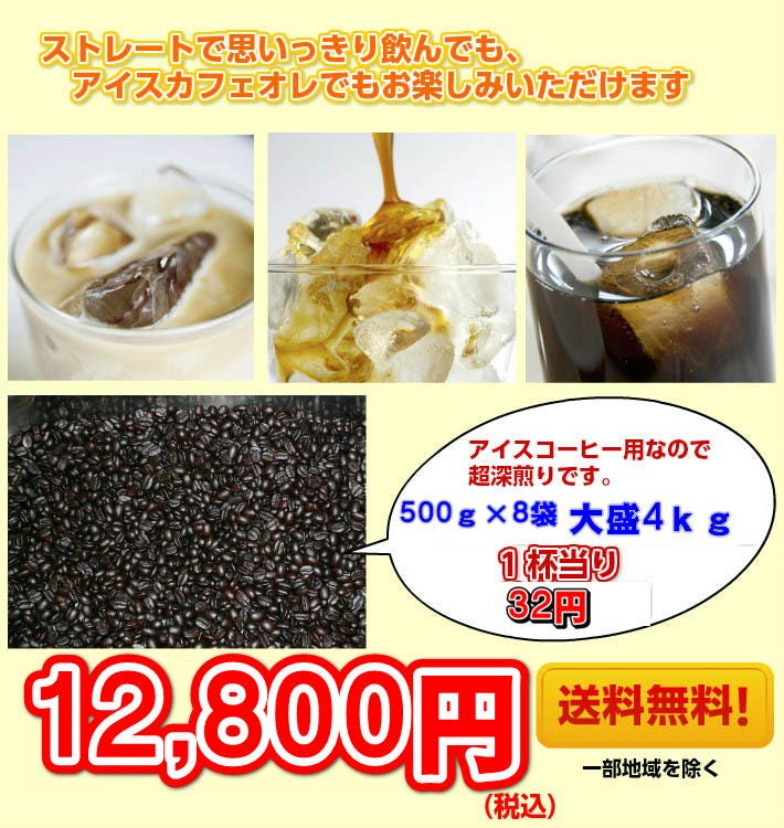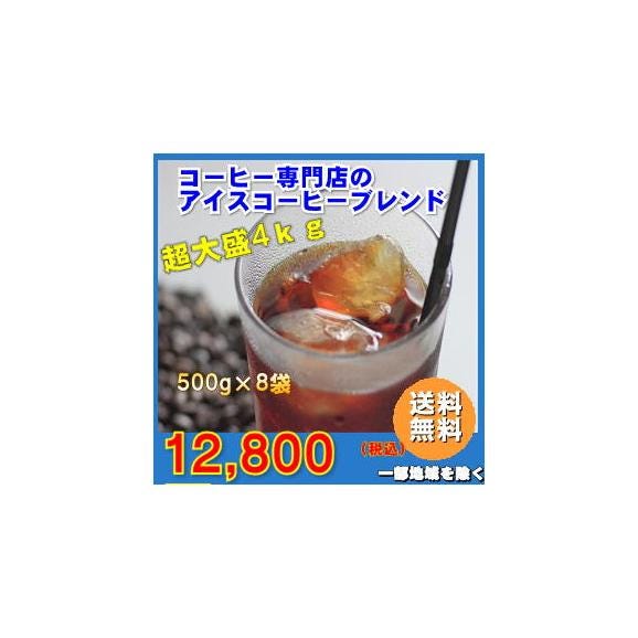 ■アイスコーヒーブレンド500g×8(合計4kg)約400杯 合計たっぷり4,000g(約400杯分)! ◆アイスコーヒーブレンド通常商品(200g/850円(税別・送料別)はこちら→ |