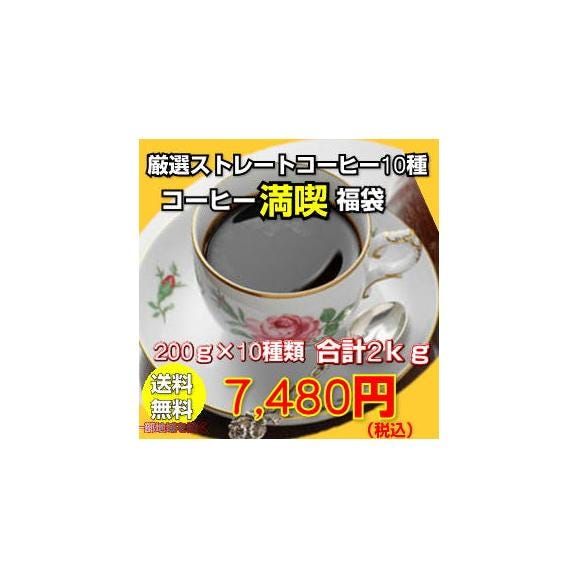 珈琲専門店の香り高いコーヒーをお届けします!! ストレートコーヒー10種!コーヒー満喫福袋 ■ブラジル×200g(約20杯分) ■ガテマラ×200g(約20杯分) ■モカ×200g(約20杯分) ■コロンビア×200g(約20杯分) ■キリマンジャロ×200g(約20杯分) ■マンデリン×200g(約20杯分) ■ホンジュラス×200g(約20杯分) ■メキシコ・アルツーラ×200g(約20杯分) ■ドミニカ×200g(約20杯分) ■コスタリカ×200g(約20杯分) 合計2kg(約200杯分) たっぷり入って送料無料! |