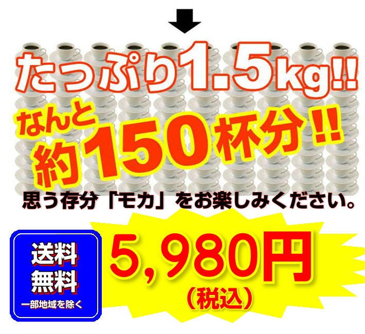 エチオピア「モカ・シダモ」は、標高2000m以上の高地で栽培されています。 モカの中でも特に上品な酸味と甘く芳醇な香りで人気のモカ・シダモ。モカハラリに比べて酸味が優しいので、幅広い年齢層に好まれているコーヒーです。 様々なコーヒーブレンドに選ばれているモカ・シダモは、ブレンドすることによって、酸味と甘い香りがプラスされ、よりコーヒーを楽しむ方に喜ばれています。 ■モカ・シダモ×1.5kg(500g×3) 合計たっぷり1 ,500g(約150杯分)! |
