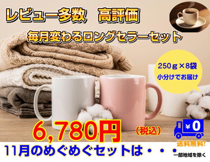 | 4 | モカ | 上品な酸味と甘み、甘く芳醇な香りで人気のモカ・シダモ。優しい酸味が、幅広い年齢層に好まれているコーヒーです。(250g×2/合計500g/約50杯分) |