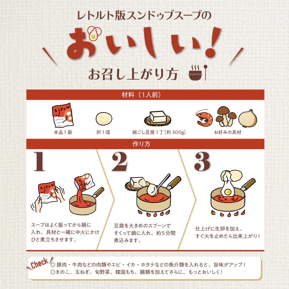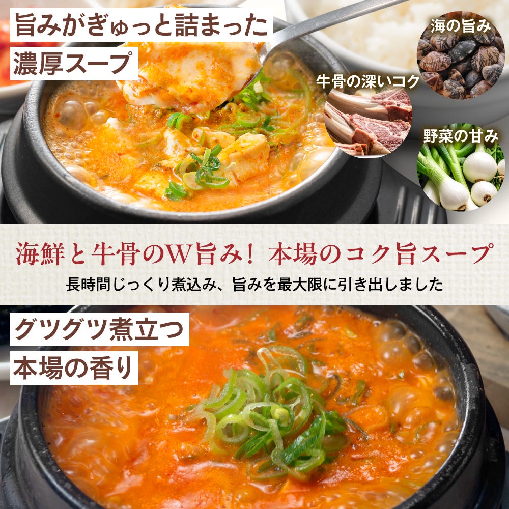 開発期間は1年!オーナー自らが開発に立ち合い、丸一年かけて作ったこだわりぬいた自慢のスープ!辛み調整を聞かせた選べるスープは2段階で、容量はお一人様ならたっぷりの200gです。豆腐と相性抜群のヘルシーさも魅力の一つで、どなたでも美味しく召し上がっていただけます!