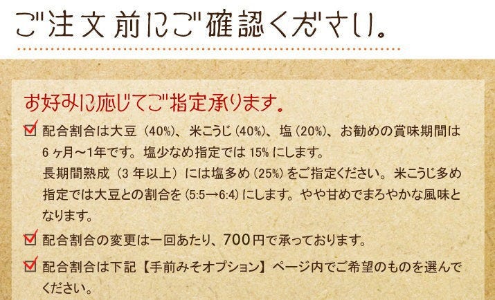 お好みで、こうじ多め、塩多め・少なめのご指定ができます。