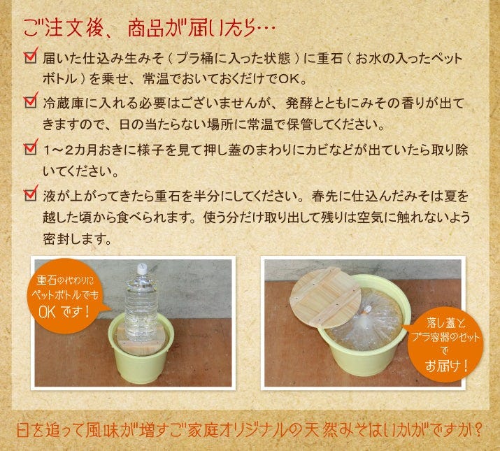 日を追って風味が増す、ご家庭オリジナルの天然みそを手軽にお楽しみいただけます。