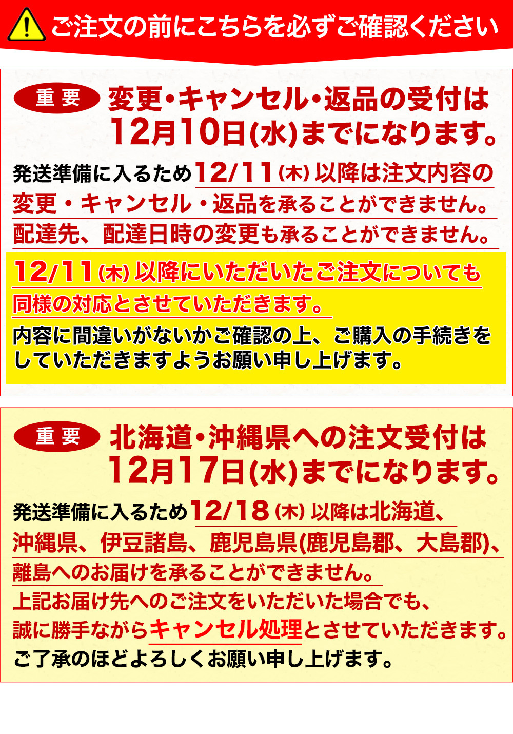 ご注文のご変更・キャンセルの受付を12月10日(水)までとさせていただいております。