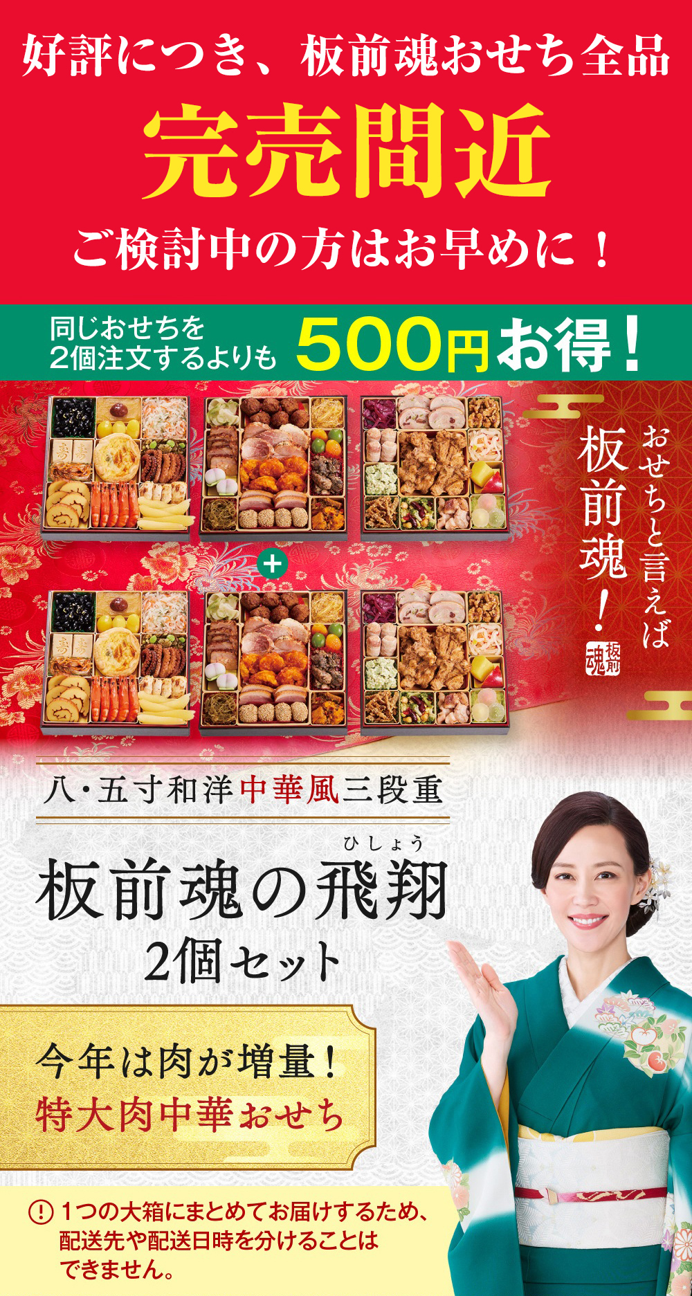 おせち料理の同梱発送はできません。個別配送となります。