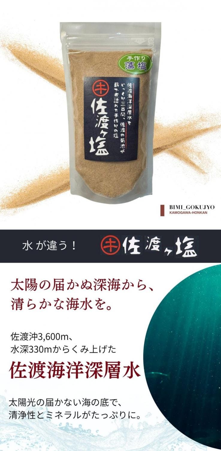 - 原材料:海水(佐渡海洋深層水)ホンダワラ(佐渡産)
