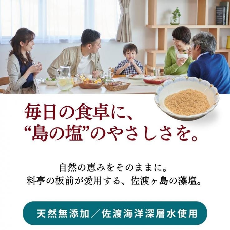 郷土の食を知り尽くす料理人が愛用する【佐渡ケ塩】で、ご家庭でのお料理が一層美味しく、家族や友人との食事がさらに楽しい時間に変わるでしょう。新潟から届く、佐渡の海の恵みをそのまま閉じ込めた、料亭品質の藻塩をぜひご堪能ください。