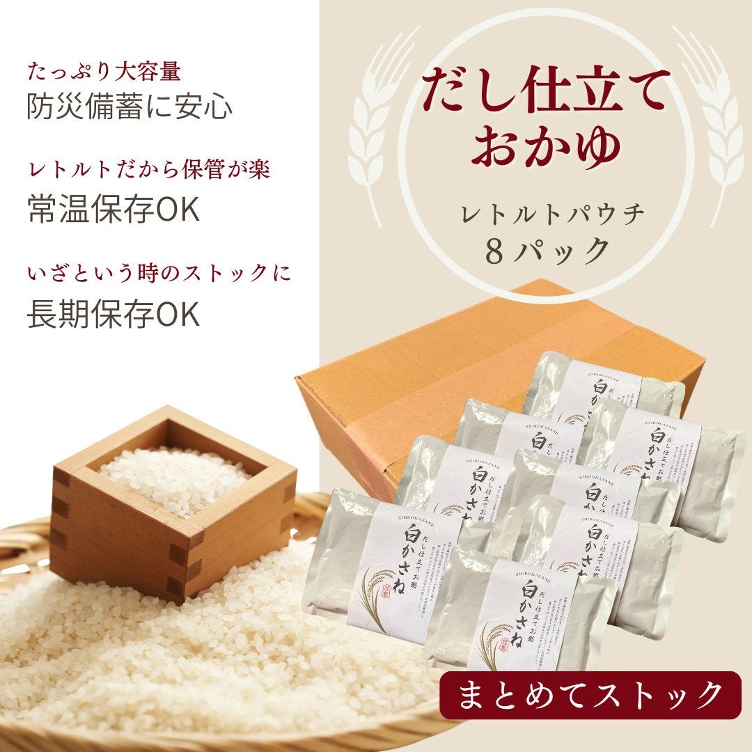 長岡産コシヒカリ、長岡産醤油、地域の極上ブランドにこだわった板前仕立のだし仕立お粥です。常温レトルトだから常備品に、防災対策のストックとしても、お見舞いギフトとしてもご利用頂いています。