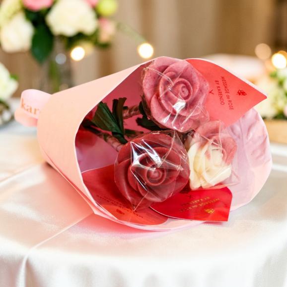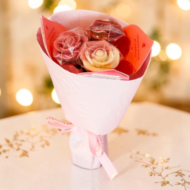 karendoで人気の薔薇のブーケ型チョコレートに、母の日のための特別な3本セットが登場しました。繊細にかたどられたチョコレートは、本物のバラを思わせる美しさ。やわらかなピンクのラッピングに包まれた姿は、まるで小さな花束そのものです。