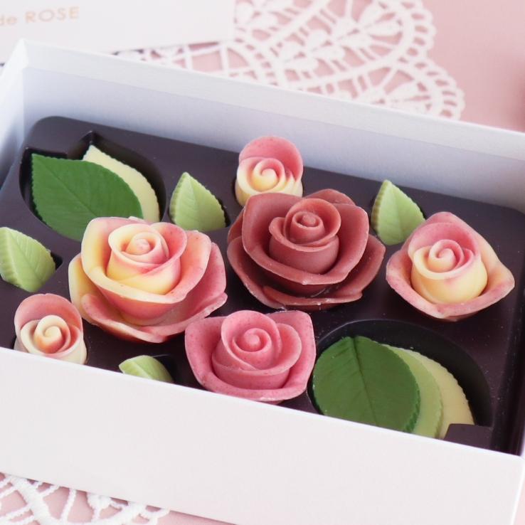 花びら一枚一枚の曲線や厚み、立体感にまでこだわった造形は、職人の繊細な技が息づく仕上がり。味わいにもこだわり、シェフが甘みと苦みのバランスを丁寧に吟味し、果実の香りやまろやかなカカオの風味が引き立つよう丹念にブレンドしました。