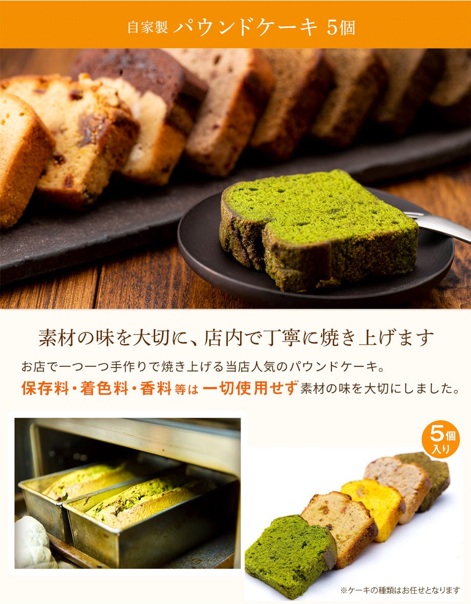 パウンドケーキ5種の内容はランダムになります。