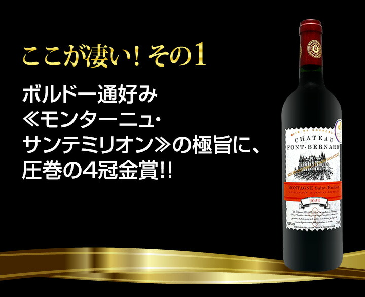 これまで何千本というワインを試飲してきた 当店ワインスタッフが、金賞ワインの頂点だけを厳選しました!! 当店ワインが選んだのは、名ばかりの金賞ワインではなく、 実際に飲んで本当に美味しい最上級の金賞ワインだけ!! 金賞は数あれど、本当に美味しいと思った金賞ボルドーだけを 必ずテイスティングをして、厳選して選び抜いたオススメの6本!
