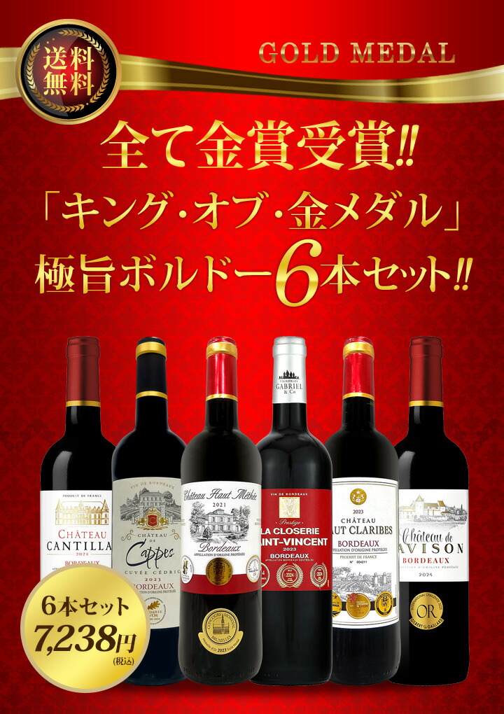 商品名: 第294弾 全て金賞受賞 キング・オブ・金メダル 極旨ボルドー bordeaux 赤ワイン wine 6本セット set
