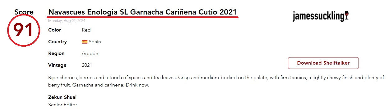 さらに、ジェームス・サックリング・ドット・コムにおいても【91点】を獲得!!