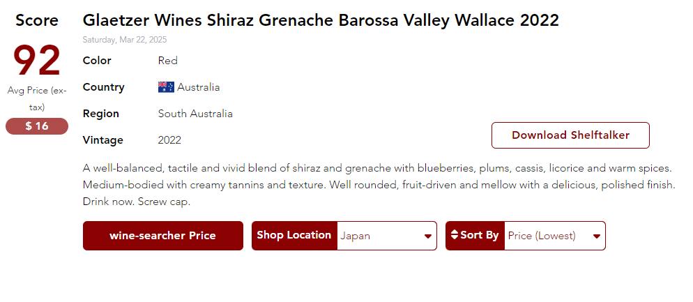 - 『美しい杉の香り、タバコ、土、ブラックチェリー、ブルーベリーのアロマ。非常に濃厚な味わいに、完熟したブルー&ブラックフルーツのフレーバーが構成され、さらに見え隠れする適度なタンニンと長い余韻を持つ!!この驚くべきヴァリューをもつワインは8-10年まで楽しめるであろう!!』と絶賛するワインです。このグレッツァー・シリーズで最もお買い得であるワラスは世界的にも超人気で入手困難なんです!! 商品名:グレッツァー・ワラス 2022 オーストラリア Australia 赤ワイン wine 750ml フルボディ ジェームズサックリング92点