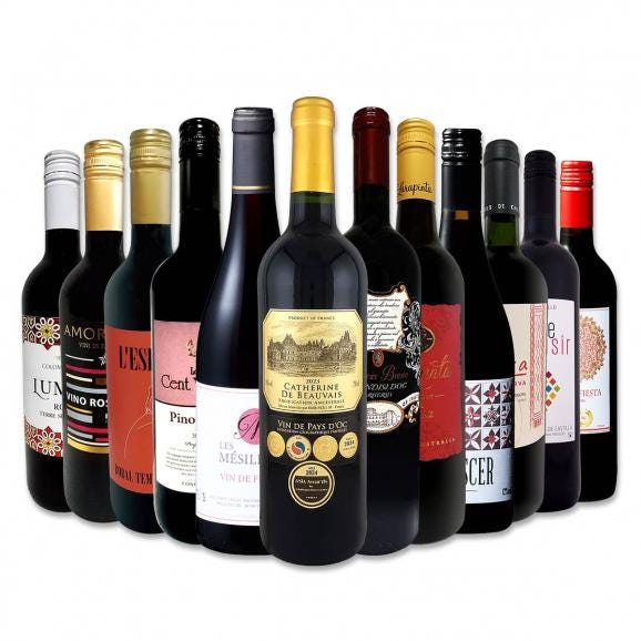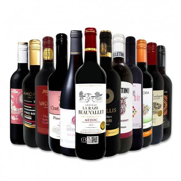 - 当店厳選赤ワイン12本が勢ぞろい!! 思いっきり満喫してください!!