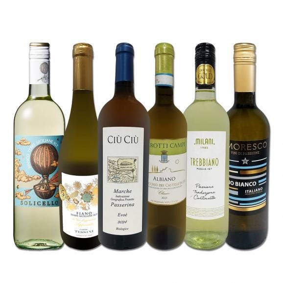 - 当店大人気≪チウ・チウ≫が地場品種パッセリーナから仕込む極旨に、ガイド誌で高評価連発!!マルケの凄腕が放つ超快適ヴェルデッキオ!!そして!!【ルカ・マローニで95点!!】南イタリアの重要品種[フィアノ]の激旨に、≪堂々のダブル金賞!≫人気産地プーリアの激旨[トレッビアーノ]などなど!!人気のイタリアから、激旨白ワイン6本をセレクトいたしました!!バラエティ豊かなイタリアワインの個性をご満喫ください!! 商品名: バラエティ豊かな個性を満喫 激旨イタリア Italy 白ワイン wine 6本セット set