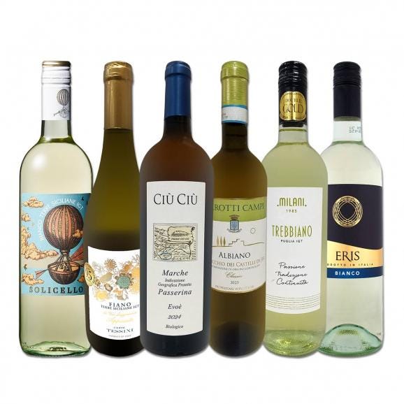 - 当店大人気≪チウ・チウ≫が地場品種パッセリーナから仕込む極旨に、ガイド誌で高評価連発!!マルケの凄腕が放つ超快適ヴェルデッキオ!!そして!!【ルカ・マローニで95点!!】南イタリアの重要品種[フィアノ]の激旨に、≪堂々のダブル金賞!≫人気産地プーリアの激旨[トレッビアーノ]などなど!!人気のイタリアから、激旨白ワイン6本をセレクトいたしました!!バラエティ豊かなイタリアワインの個性をご満喫ください!! 商品名: バラエティ豊かな個性を満喫 激旨イタリア Italy 白ワイン wine 6本セット set