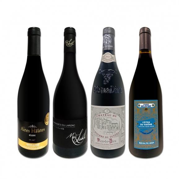 誰もが知る憧れる世界最高峰ワインの使用樽で熟成!!究極のガレージワイン≪マス・ラヴァル≫をメインに、知る人ぞ知るパーカー5ツ星!!【ムール・デュ・タンドル】の上級キュヴェ!!そして!!【圧巻のパーカー91~94点!!】南仏銘醸ミネルヴォワ・ラ・リヴィニエールの超極旨に、あふれ出す余裕と妖艶!!帝王シャプティエが造るお値打ちローヌ!!人気の南仏エリアからワンランク上の極旨赤ワイン4本を厳選いたしました。ゆったりとお楽しみください。