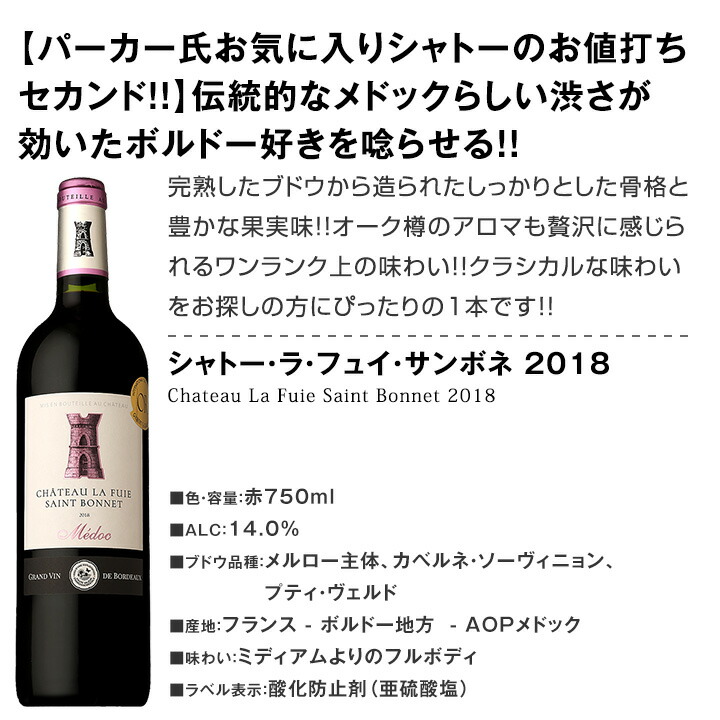パーカー氏お気に入りメドック≪シャトー・サンボネ≫の極旨セカンドに、【堂々のダブル金賞!!】飲み応えたっぷりの南仏激旨!!そして!!南仏の有力栽培者協同組合が産みだす激旨ピノ・ノワールに、信頼の老舗ワイナリー[ピッチーニ]がシチリアで造る激旨!!さらに!!高地畑で栽培されたスペイン固有の高貴品種テンプラニーリョ100%に、≪パリ農業コンクール金賞!!≫まろやかフルーティーな南仏激旨などなど!!赤ワイン好きの皆様!!お早めにお買い求めください!!