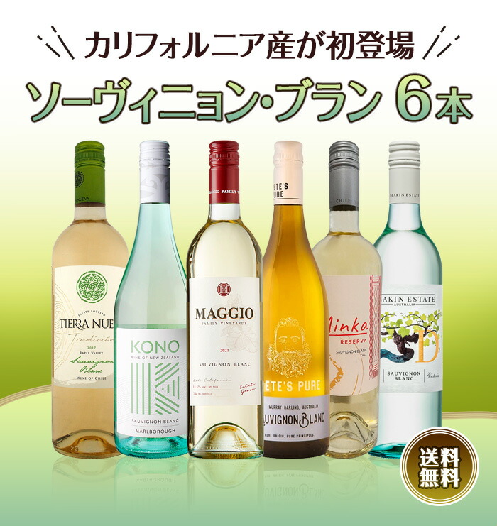 - 白ワイン好きの皆様に愛される爽快なソーヴィニョン・ブラン!当店で大人気のロングセラー、ニュージーランドのマールボロ産を中心に、SNSで話題になり、その味わいから大人気のオーストラリア産ソーヴィニョンなど、充実の6本セット!緑の草原を思い起こさせるすっきり爽やかなワインや旨みのあるミネラル、華やかなパッションフルーツを感じさせるソーヴィニョン・ブランx6本!ニュージーランド、アメリカ、チリ、オーストラリア各地の新世界ソーヴィニョン・ブランをお楽しみください! 商品名: カリフォルニア産ソーヴィニョン・ブランが初登場 爽快さわやかなソーヴィニョン・ブラン厳選6本