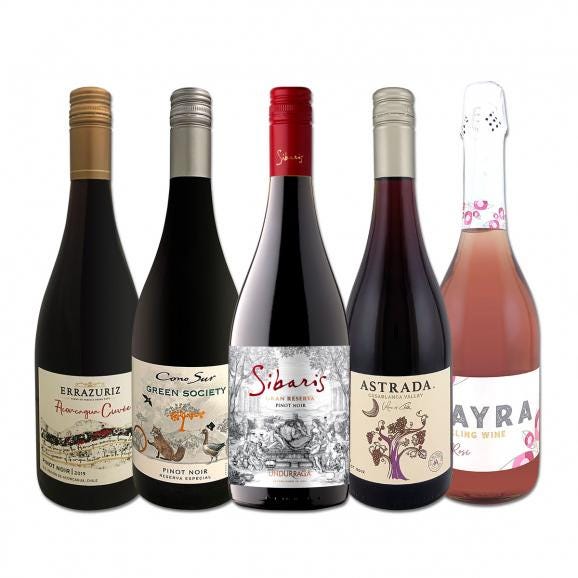 今や、フランスを抜いて輸入量ナンバーワンのチリ!栽培が難しいといわれてきたピノ・ノワールの品質も高くなり、今やピノ好きの日常にチリ・ピノはなくてはならない存在です。チリ最古のワイナリーが造るグラン・レゼルヴァ・クラスのピノと、当店直輸入のカサブランカ産ピノ・ノワールをダブルメインに、さらに、今回初登場のピノ・ノワール100%のロゼ・スパークもセットにして、デイリーからデートシーンまで楽しめる、ピノ好きのために厳選したピノづくしの5本セットをご用意しました!