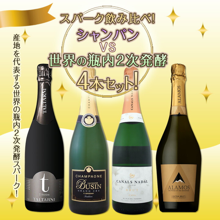 - 世界の瓶内2次発酵スパークを飲み比べ!シャンパーニュをメインに、スペイン、オーストラリア、アルゼンチンのスパークを揃えました!スペインは、もちろんカヴァ!オーストラリアからはフランスの醸造ファミリーが造り上げたワイナリーでフレンチ・エスプリを感じるスパーク!!。アルゼンチンのブティック・ワイナリーが造る当店大人気の泡!すべて瓶内2次発酵の本格的なスパークリング&シャンパンです! 商品名: シャンパンvs世界の瓶内2次発酵スパーク飲み比べ