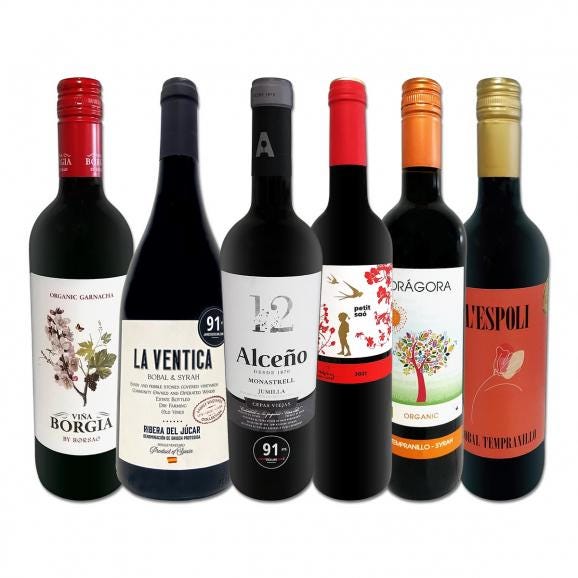 単品で買うより断然オトク!!赤ワイン好きの貴方のために特別に厳選いたしました!!どれも当店が厳選した極旨スパニッシュ!!自信を持ってお届けします!! この6本でスペイン全土の地ワインをたっぷり満喫!!各地の多彩なワイン文化をご堪能あれ!!今夜は≪おうちバル≫気分で赤ワインを開けよう!!お気楽極楽、陽気な時間はスペインワインと共に!!