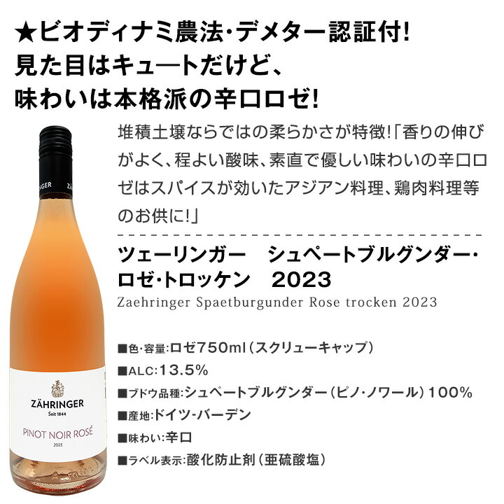 - ★当店独自輸入★バイヤー厳選★辛口ロゼワイン6本セット!『ロゼワイン好きの皆様、迷わずお買い求めくださいませ!!』 ロゼワイン好きのバイヤーが厳選しました。チリとイタリアからは軽やかなスパークリング!ドイツのバーデンはビオディナミ農法の本格ロゼとファルツから個性的なロゼの飲み比べ!ロゼ大国のフランスはロワールとボルドーからオーガニックのロゼ!是非お得なこの機会をお見逃しなく!! 商品名: 当店独自輸入 バイヤー厳選 辛口ロゼ rose ワイン wine 6本セット set
