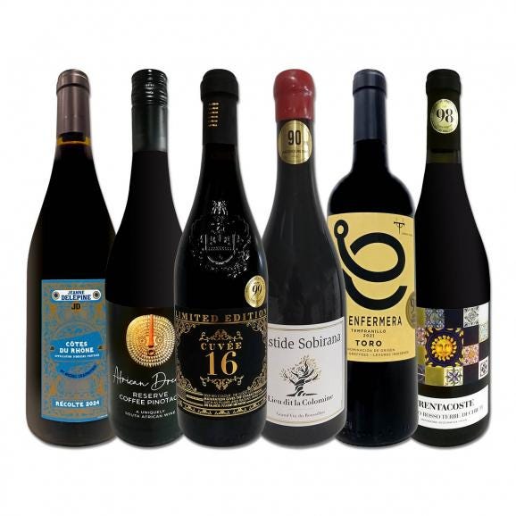 ≪ルカ・マローニで驚愕の最高満点99点獲得!!≫】 イタリア最強レベルのコスパ≪ボッター≫の濃厚極旨に、南仏の天才醸造家≪ラファージュ≫の濃厚激旨!!そして!!リッチなトースト香が特徴★南アの老舗が造るコーヒー・ピノタージュに、、【サックリング91点】スペイン銘醸地トロの濃厚フルボディ!!さらに!!パーカー100点連発★帝王シャプティエが造る激旨ローヌに、≪ルカ・マローニで98点獲得!!≫アブルッツオのヴァリューな極旨!!人気の各国から飲み応えタップリの6本を厳選!!