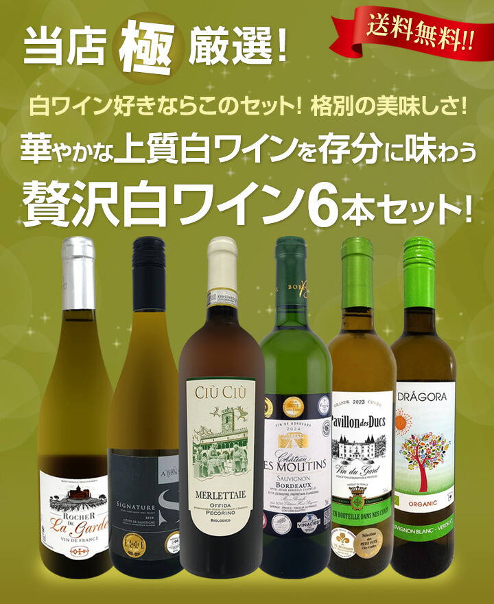 - 白ワイン好きのための当店≪極≫厳選!華やかでボディがしっかりしたホワイト6本!旨みがギュっと凝縮した白ワインだけ!当店が各国から厳選した圧倒的上質白ワインのみをセレクトした白ワイン好きの為の特別白ワインセット!人気の各国から格別の美味しさをお届けします! 商品名: 第72弾 当店 極 厳選 白ワイン wine 好きならこのセット set 格別の美味しさ 華やかな上質白ワイン wine を存分に味わう贅沢白ワイン wine 6本セット set