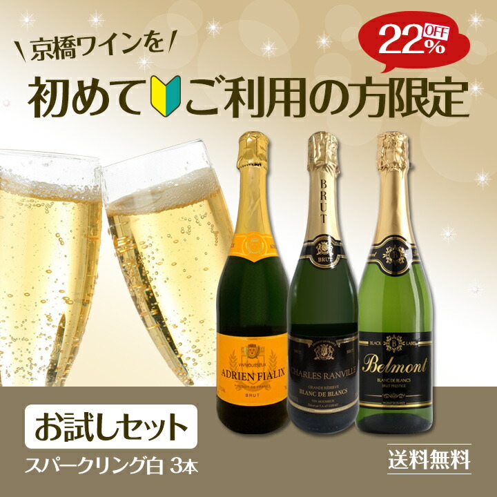 - <京橋ワインを初めてご利用の方限定>で当店大人気の辛口スパークリングワインがお手頃価格で試せる特別3本お試しセット! 商品名: 初回限定 京橋ワイン wine を初めてご利用の方限定お試しセット set おひとり様1セット set 限り 辛口スパークリング sparkling ワイン wine 3本