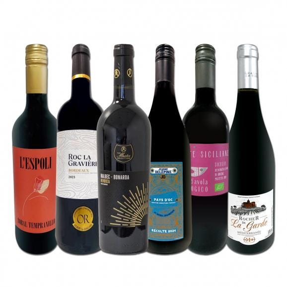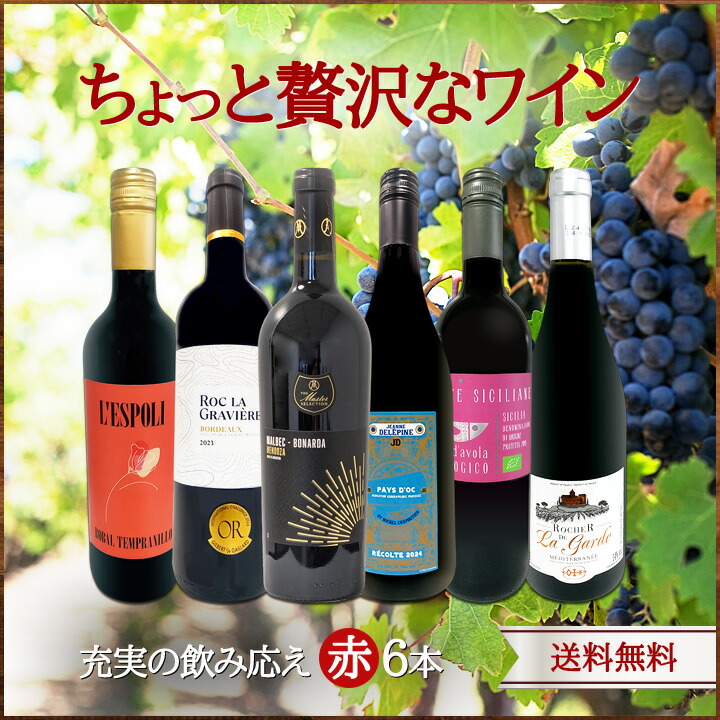 美味しい赤だけを超厳選!!様々な味わいが楽しめる充実大満足のスーパー・セレクト6本!一同に並べて飲み比べるも良し、普段飲みにするも良し、毎日1本ずつ料理と合わせて飲むのも楽しい!