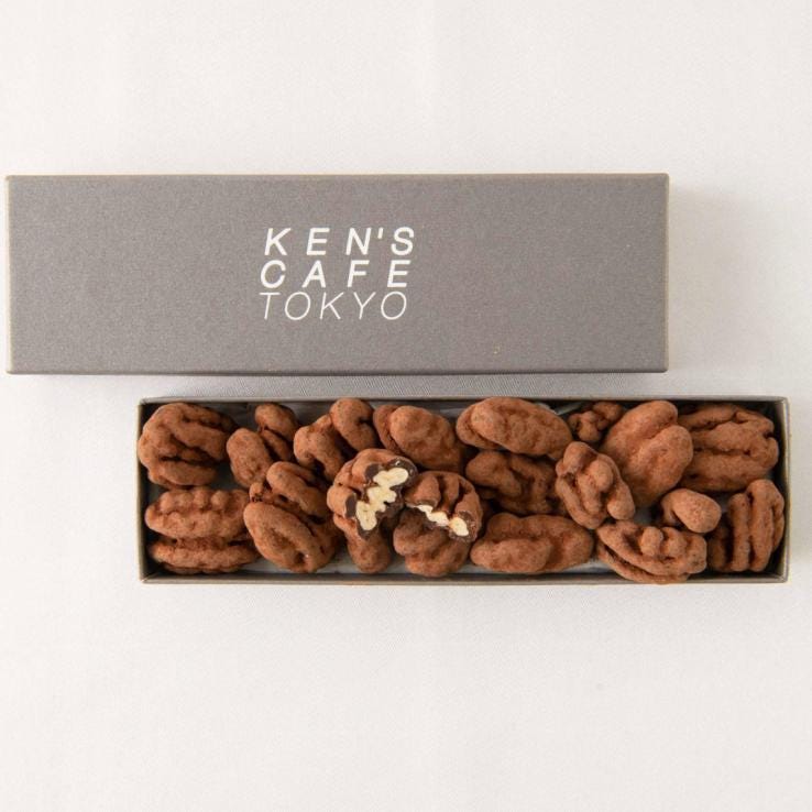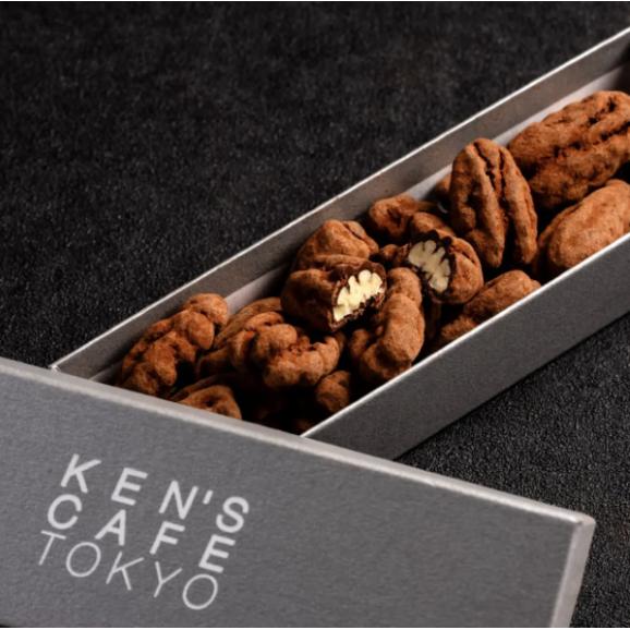 ペカンナッツを軽くローストし、ベルギー産のクーベルチュールチョコレートとココアで包みました。