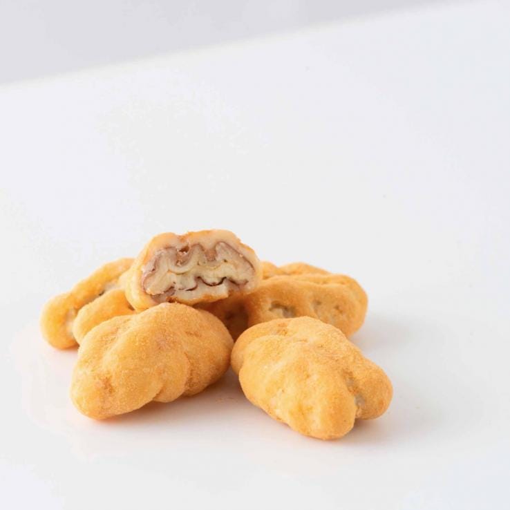 軽くローストしたペカンナッツに岩塩を加えたホワイトチョコレートとキャラメルパウダーで包みました。