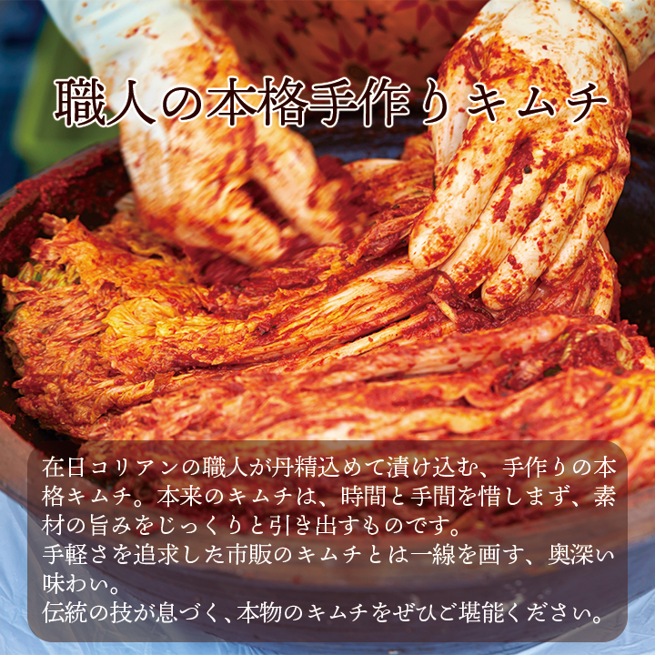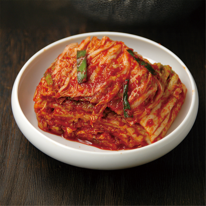 白菜キムチ:白菜(国産)、ニラ(国産)、漬け原材料(りんご、唐辛子、アミエビ、砂糖、にんにく、生姜、鰹節、塩) / 調味料(アミノ酸)