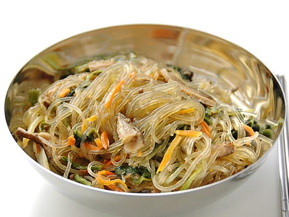 チャプチェとは韓国はるさめと野菜やお肉を一緒に炒めて作る韓国料理で、とっても香ばしく、お子様でも食べられる、辛くない韓国料理の人気メニューです。