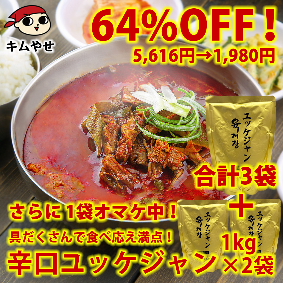 - 辛口ビーフユッケジャン1kg ×2袋+1袋オマケ 合計3袋(一袋 約2~3人前)