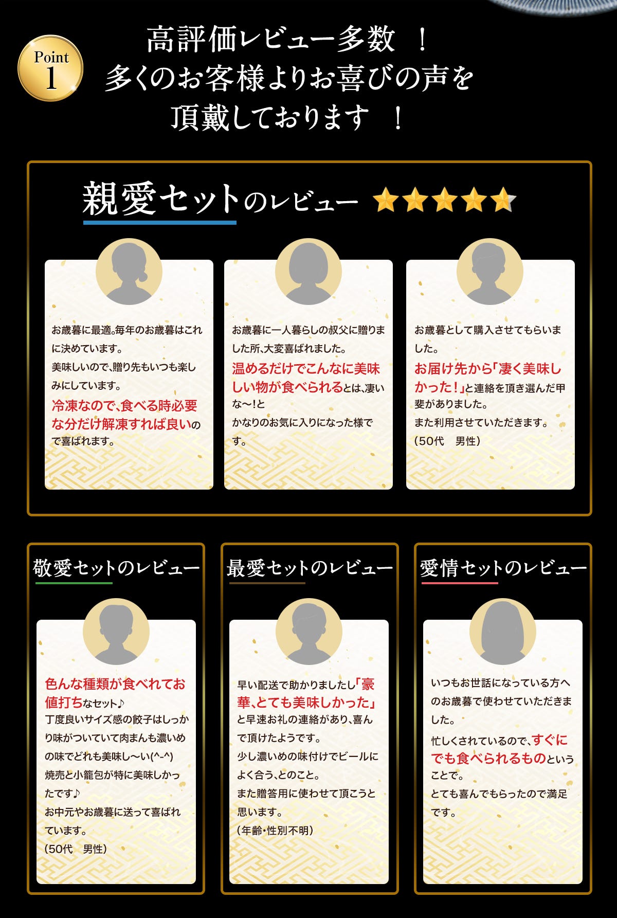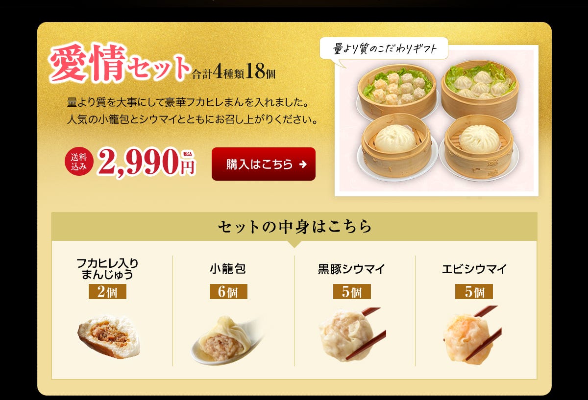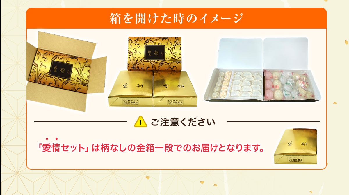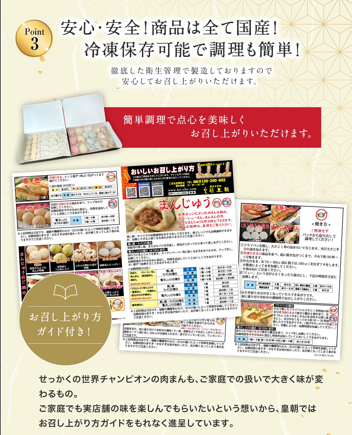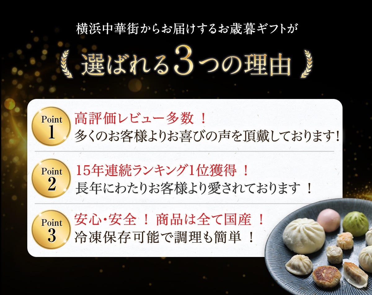 肉まん6個 / あんまん3個 / 中華風牛鍋まん2個 / フカヒレ入りまんじゅう2個 / 水餃子15個 / 黒豚生餃子15個 /黒豚シウマイ10個 / エビシウマイ5個 / 小籠包6個 / ゆずまん3個- ●原材料・アレルギー情報一覧はコチラ●