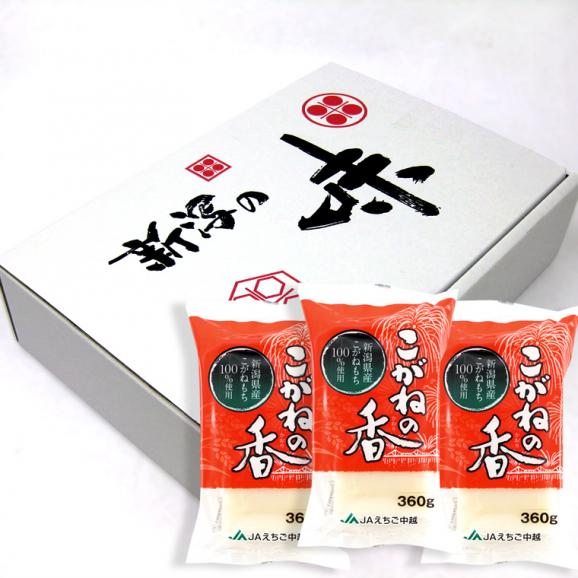 杵つき餅は、新潟産こがねもち100%を丁寧に杵でつきました。