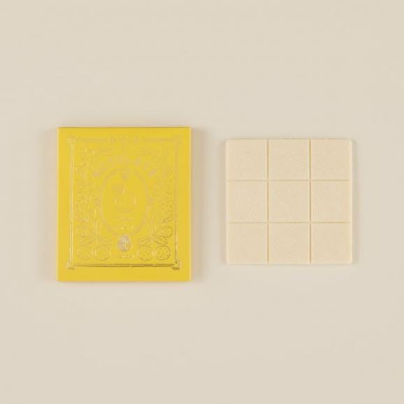 - 1枚40g ココアバター(カカオ豆(ガーナ、コートジボアール、その他))、全粉乳、和三盆糖、グラニュー糖、ゆず果汁パウダー、海洋深層水、( 一部に乳成分を含む)