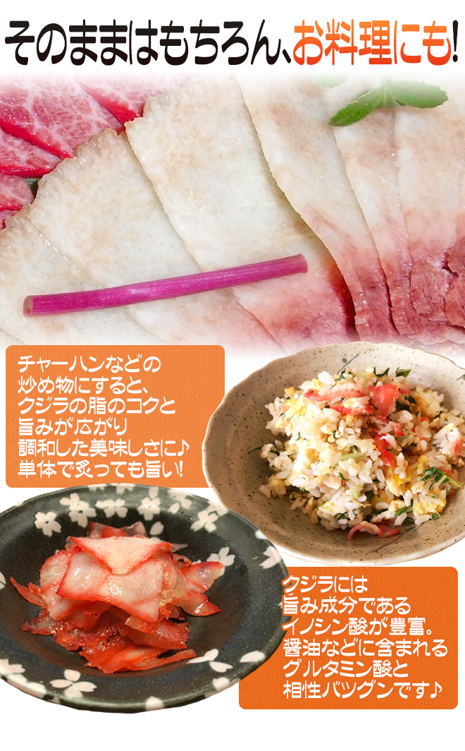 「畝須」はクジラが餌を食べるときに動かす部分のため、脂のりがよく旨みが強いといわれる人気のある希少部位。