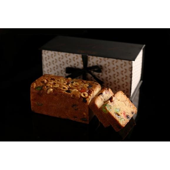 ナッツ、ドライフルーツたっぷりで、ずっしりとした食べ応えのあるケーキに仕上がっております。