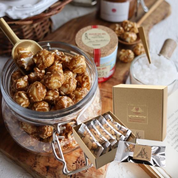 フランス産のキャラメルペーストをたっぷり絡めた濃厚な味わいと、サクサク食感がクセになるフレーバーポップコーン♪