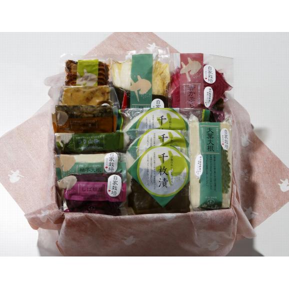 【内容】千枚漬(120g×3)、赤かぶ(200g)、大葉大根(1切)、昆布白菜(1/4切)、柚子大根(150g)、しば胡瓜(150g)、賀茂茄子からし漬(200g)、瓜山椒(150g)、刻みすぐき(150g)、山椒沢庵(150g)