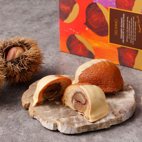栗ペーストとバターを贅沢に使った、しっとりとした焼き菓子です。生地の中には丸ごとの栗を一粒入れ、トップはショコラティエならではのブロンドチョコレートでディップしました。栗の風味豊かな、満足感のある逸品です。