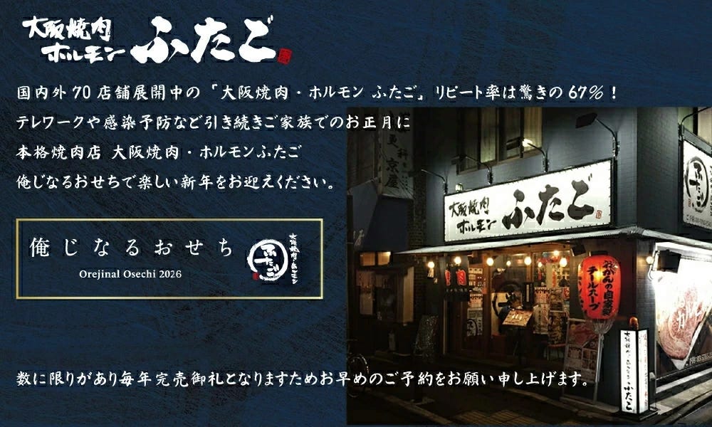 ご家庭で大阪焼肉・ホルモンふたごの自慢の肉おせちをお楽しみください!