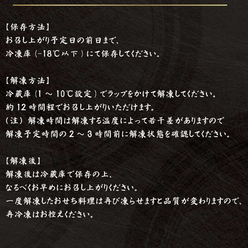 一度解凍したおせち料理は再び凍らせますと品質が変わりますので、再冷凍はお控えください。